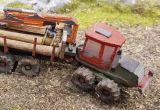 Als Basis diente ein 3D-Modell von DM-Toys. Das Fahrzeug bekam drehende Räder und Spiegel von FKS-Modellbau. Ein Abziehbild wurde angebracht und die Holzladung aus einem Stück Holz gerfertigt.