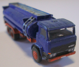 Umgebauter Tomytec Tanklastwagen. Kurzerhand wurde das Modell in Einzelteile zerlegt, der Rahmen abgeändert und die Doppelachse von vorne nach hinten verlegt. Dabei mussten die hinteren Kotflügel neu aus Riffelblech gefertigt werden und teilweise die Kotflügel am Führerhaus erneuert werden. Die Inneneinrichtung wurde natürlich auch auf Linkslenker abgeändert.