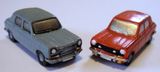 Simca 1100 und 1100 Ti. Einmal von 1967 ohne Zusatzscheinwerfer und schmaler Heckleuchte, sowie als Ti Version von 1973. Als Basis dienten die Metall Modelle von "YL". Die Modelle wurden entsprechen lackiert.