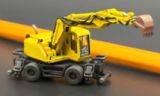 Eigenbauprojekt eines Gleisbaubagger. Als Basis diente ein CAT 315 von Norscot das entsprechend abgeändert wurde. Der Baggerarm ist nochmals mit einem beweglichen Gelenk versehen und das ursprüngliche Kettenfahrwerk gegen eines mit Gummirädern ersetzt worden. Eine andere, voll bewegliche Baggerschaufel und eine 2-Mann Kabine wurde angebaut .