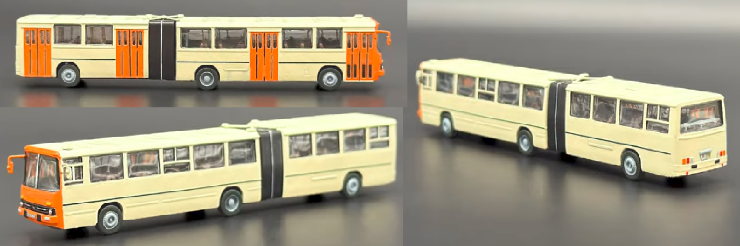 Magirus Deutz O-3500 Gelenkbus. Das Modell entstand aus zwei Ü-Ei Bussen von Ferrero und wurde neu Lackiert.