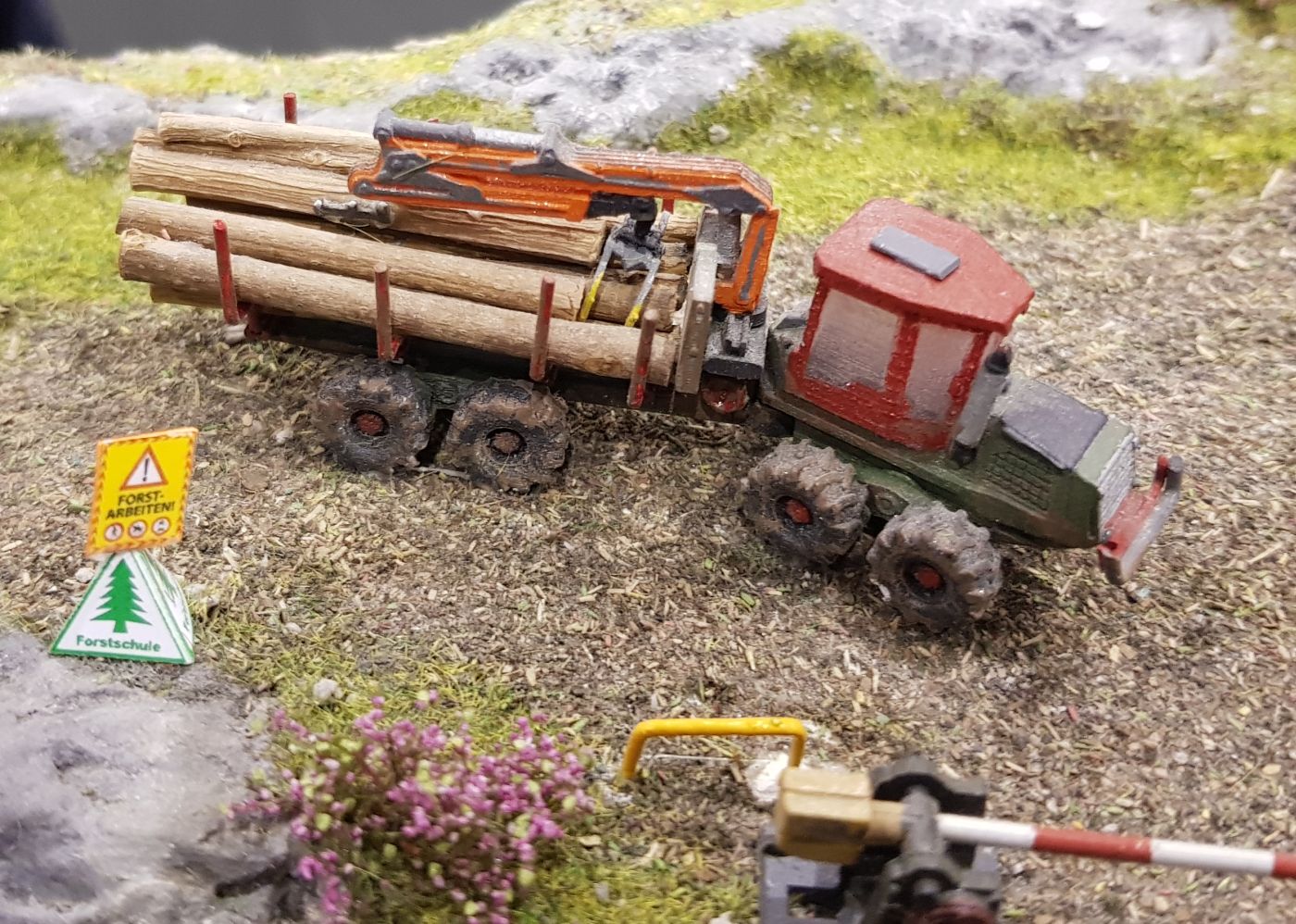 Skidder aus einem 3D Modell. Eine entsprechende Farbgebung wurde mit Revelll Aqua Color durchgeführt und das Modell entsprechend dem Einsatz gealtert.