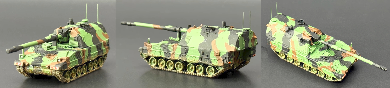 Hier wurde eine Panzerhaubitze aus dem 3D-Drucker gestaltet. Neben der Lackierung wurde ein Tarnnetz aus einer Damenstrumpfhose gestaltet.