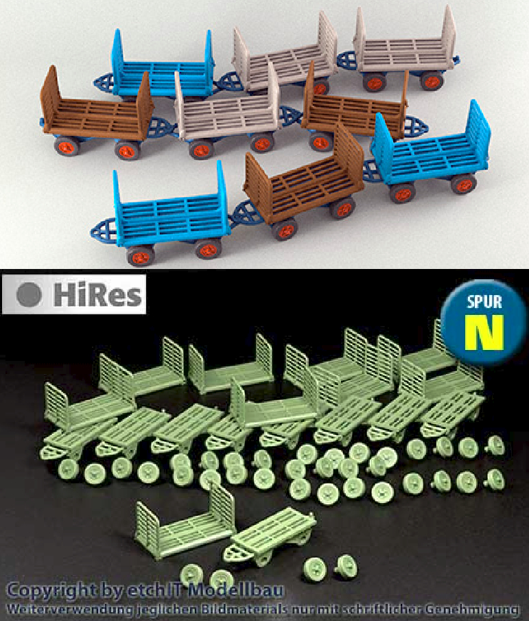 Sortiment Gepäckwagen für den Bahnsteig, 9 Stück, Bausatz