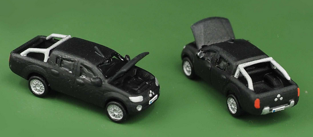 PKW ähnlich Mitsubish1 L200, Türen und Motorhaube offen (Resindruck, handkoloriert).