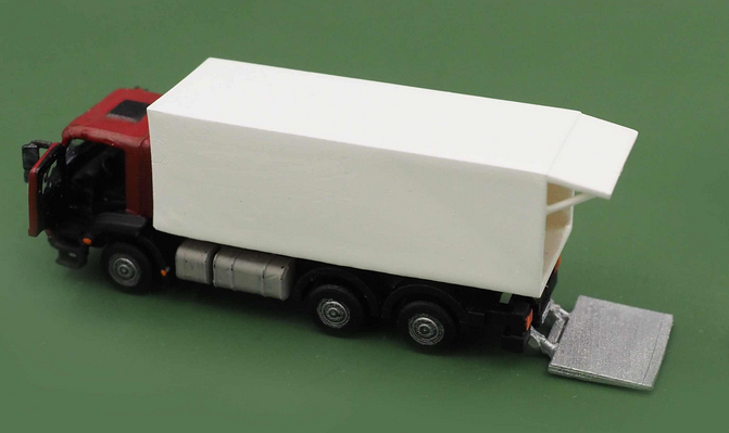 LKW Nr. 22 oder 23, ähnlich Mercedes Benz Econic Müllwagen für 120 l Mülltonnen (einteiliger Resindruck, handkoloriert), Wunschkolorierung mit gewünschten RAL Farben auf Anfrage .