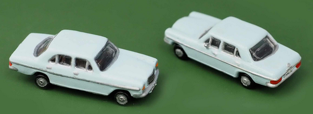 Mercedes Benz /8 (MB W115 1. Serie, 1972); Farbe Blau, handkoloriert + Decal Kühlergrill.