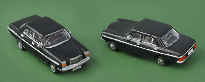 Mercedes Benz /8 (MB W115 2. Serie, 1975); Farbe Schwarz, handkoloriert + Decal Kühlergrill