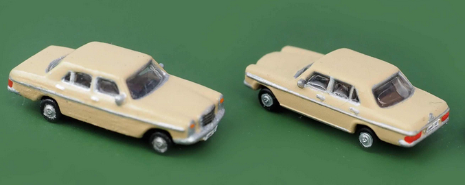 Mercedes Benz /8 (MB W115 2. Serie, 1975); Farbe Beige, handkoloriert + Decal Kühlergrill